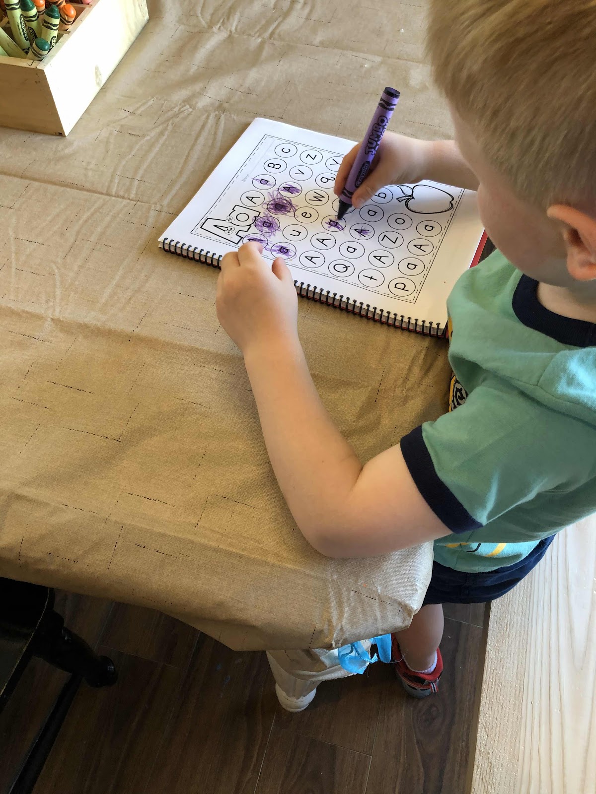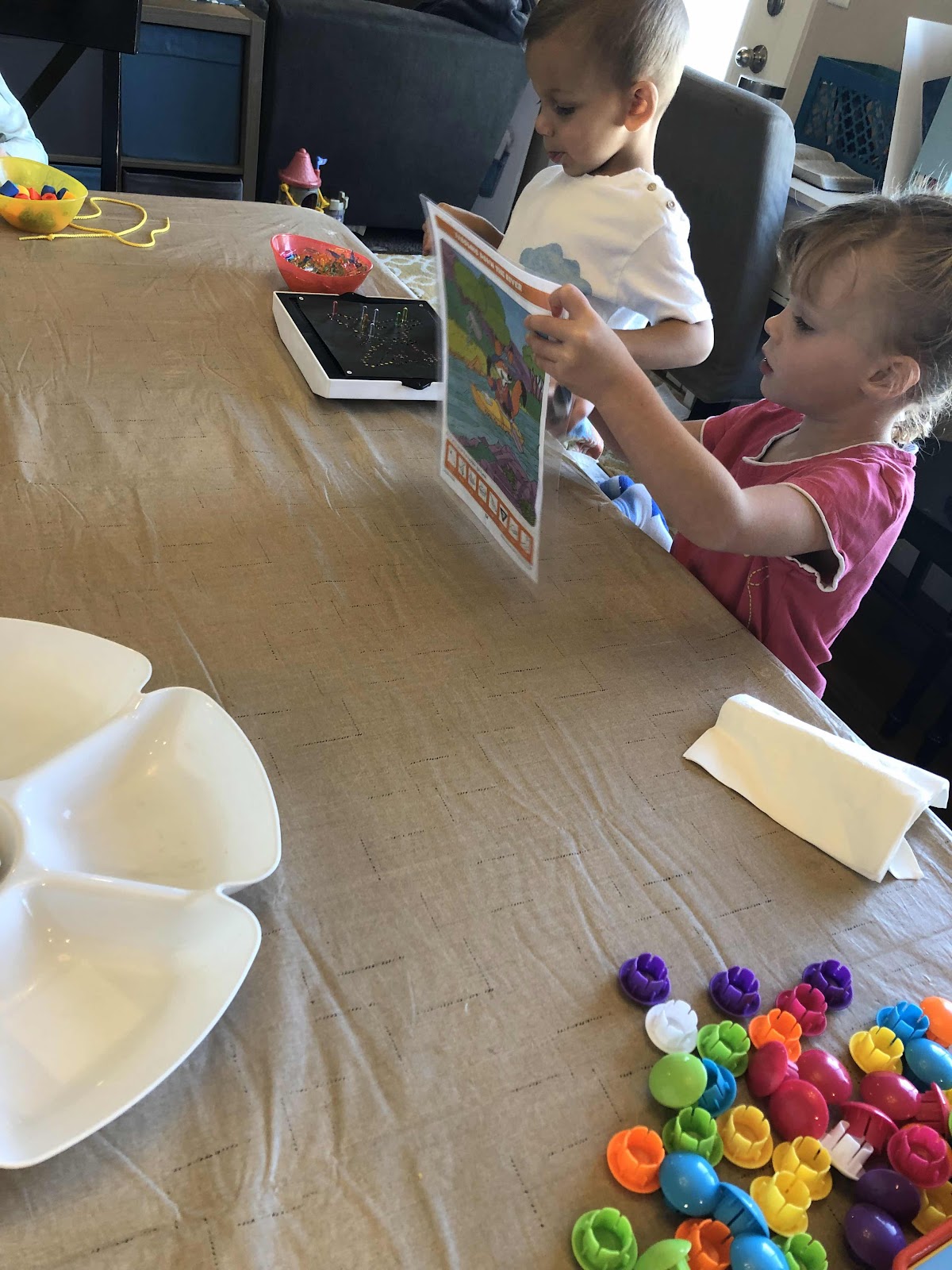 Kids get three minutes at each station, then they are asked to move to the left. This also helps them get used to systems, sharing, and a variety of different small motor skills.